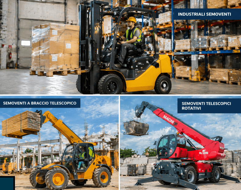 CARRELLI ELEVATORI SEMOVENTI CON CONDUCENTE A BORDO industriali semoventi/semoventi a braccio telecospico/semoventi telescopici rotativi